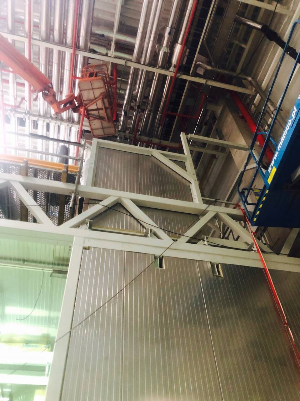 Kolejowa 6, 55-300 Przedmoście, Okres Środa Śląska, Dolnoslezské, Polsko | Linka penetrační kontrolyInvestor: XEOS, Sp. z o.o. Místo stavby: Przedmoście Montáž nosné ocelové konstrukce, technologických částí a opláštění linky pro provádění fluorescenčně penetrační kontroly leteckých motorů. Ocelová konstrukce zahrnuje podlahový rám pro zavěšení sběrných nerezových van a vynešení pozinkovaných svařovaných roštů. Z důvodu dlouhého rozponu a zatížení konstrukce množstvím jeřábových drah dopravníků a další technologie jsou použity masivní příhradové vazníky. Montáž objektu ve značně omezeném prostoru a součinnosti více prací byla pro nás výzvou. Opláštění provedeno z nerezových panelů včetně nerezových kompletačních prvků splňuje vyšší nároky pro akustickou odolnost, parovzdornost a bezprašné prostředí. Dodávka zahrnuje vnitřní příčky, obslužný žebřík, stropní plošinu s vestavbou pro vzduchotechniku včetně nerezových dveří a dalších prvků. |